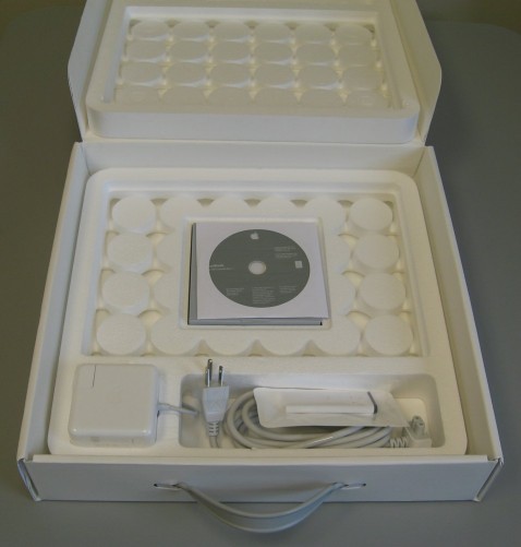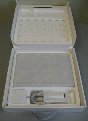 As we all know, Apple is very much so about presentation as well as utility in its products. This starts with the packaging presentation, something many PC manufacturers, except maybe Sony, ignore. Looking at past Apple product reviews on the web, it seems like it’s sort of a requisite to display the package and unpacking process, so I’ll oblige: