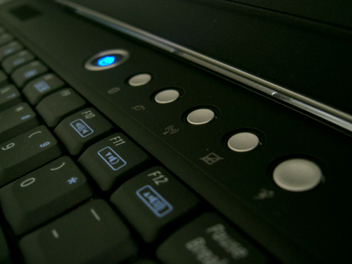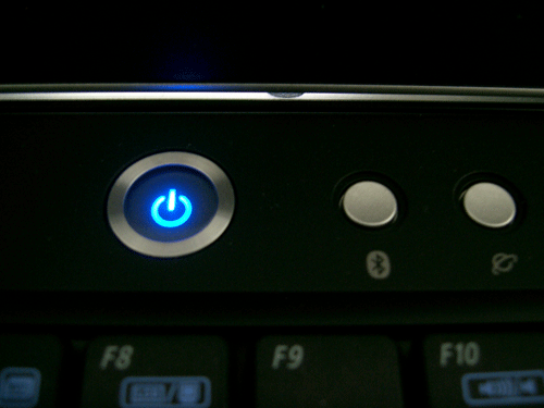 Bright blue LED power button, with 5 instant launc buttons, Bluetooth, Default Internet Browser, WiFi on/off, Disable touchpad and Power4Gear on/off (view larger image)