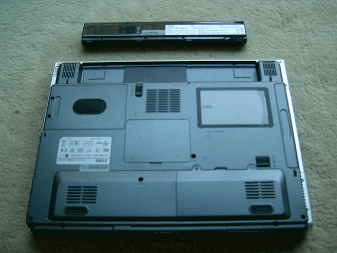 Caption: Underneath the laptop with 6 cell battery outlets (view larger image)