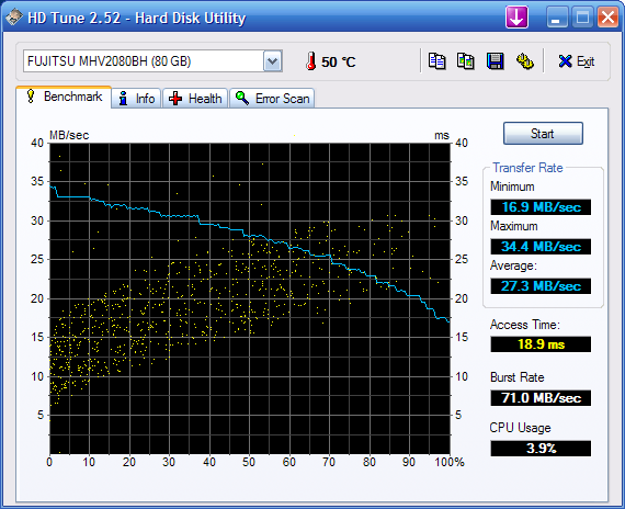 HD Tune results to illustrate hard drive performance are illustrated below: