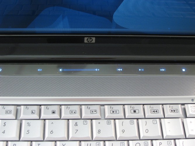 The speaker quality was "above average" for a notebook without a built-in subwoofer. The speakers for the dv5z are located at the top of the keyboard area beneath the media buttons.