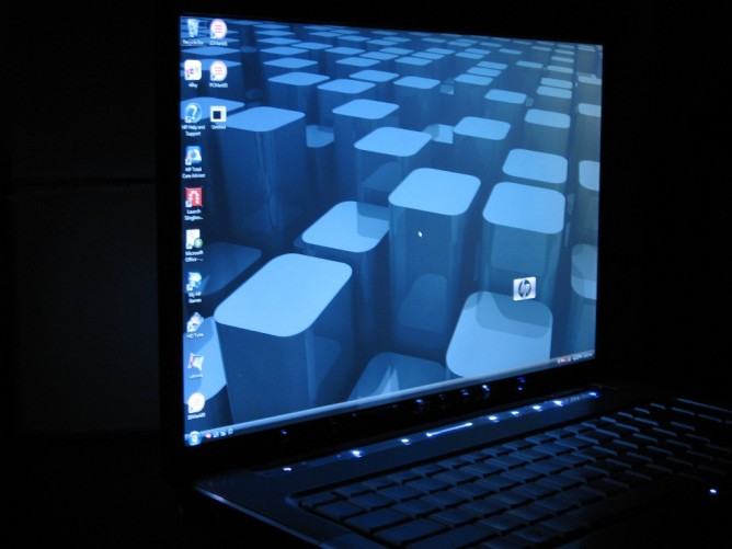 The 15.4-inch diagonal WSXGA+ High-Definition HP BrightView Widescreen Display (1680 x 1050) is quite simply one of the best 15-inch screens I’ve seen on any notebook. Detail is amazing, colors are rich with deep contrast, backlighting is even across the entire surface, and viewing angles are good. There is some color inversion when you view the screen from below … but how often do you tilt your screen back and view it that way?