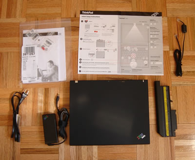 A view of what you get in the box with a new ThinkPad T43 (view larger image)