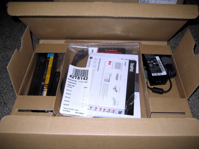 I bought my T60 Widescreen laptop direct from Lenovo on their website. The buying process was very easy – I went into the notebooks section, chose the Thinkpad line of notebooks, then the T series. From there it is very much like any other CTO website – you have options which you choose and the price gets updated. After ordering I found out that I wouldn’t be getting my laptop for nearly a month! While I was somehwat disappointed in that (HP and Dell had both quoted delivery within 2 weeks), I did learn that all of the system building / parts will be coming from China. The funny thing is that in the end I received my laptop only FOUR days after leaving Hong kong, China. My laptop consisted of the following specs: (Note: Just like any notebook manufacturer, Lenovo does not use one exact brand for some of the parts. I will be listing the brands of specific parts, as they are "the best" according to feedback I have received in learning from the forums)