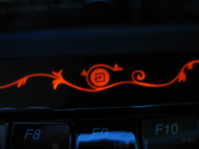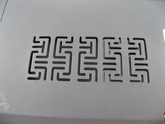 The etched aluminum display cover (available in both black and red) is probably the most interesting design element on the U110. Lenovo calls this their "Tendril texture" and it looks like an intricate floral and vine pattern. The IdeaPad designers even went the extra mile with the design by extending the "Tendril" pattern onto the bottom of the notebook and the touch-sensitive media buttons. Even the heat exhaust vents feature an extra touch of class. This certainly isn’t a boring ThinkPad.