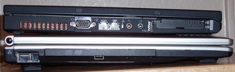 The Thinkpad comes with a good assortment or ports; 3 USB, VGA, 56k modem, Gigabit Ethernet, audio for headphones and mic, PCMCIA card slot and ExpressCard slot. Common ports missing in action are FireWire and a flash memory card reader. I have both of these ports on my Averatec and have only used the memory card slot once and the firewire I have never used. The ports given are at least the essentials. If they were to add ports, I?m not sure where they could put them unless they were to change the vent size and location. I would much rather have a cool notebook than more ports if that’s the tradeoff.