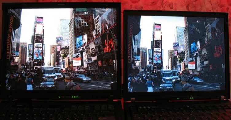 Left = R50p with Flexview. Right = T60 without Flexview. T60’s gets even worse as you view from below (view large image)