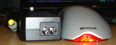 The power adapter is about the size of a standard sized optical mouse