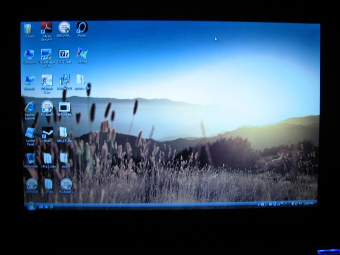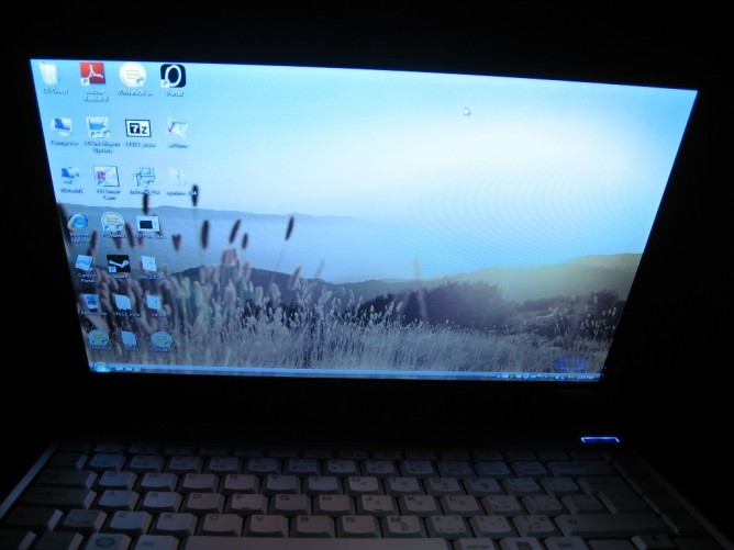 The display is very bright, with clear whites and vibrant colors. Black levels are solid, with only mild backlight bleed at the highest backlight setting. Viewing angles are about average with colors inverting and washing when you start to change your vertical viewing angle. Horizontal angles are much better, without much color distortion until extreme angles.
