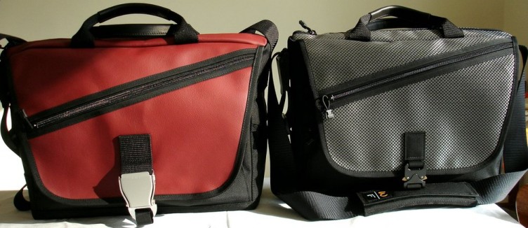 The two bags I have are the Medium and Large Cargo bags. These particular configurations are the Cargo Mambo Combos’, meaning that they include the sleeve for your notebook as well. The sleeve fits right into the bag. The Medium Cargo bag will fit up to 15.4″ notebooks. But, if you have a bulky 15.4″ as I do (mine is 1.5″ thick and weighs a clunky 7.5lbs) or an even larger computer, then you are best off going with the Large Cargo bag, which has an increased amount volume, and is lengthened horizontally. Both are the same height.