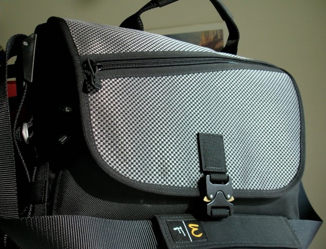 The Paragliding Buckle — it has a small profile, and is quite impossible to pull apart. The small physical size is a big plus, adding to the overall look and feel of the bag as a whole. Very solid.