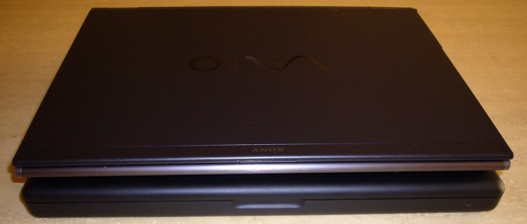 Left side view of VAIO SZ on top and MacBook on the bottom (view large image)