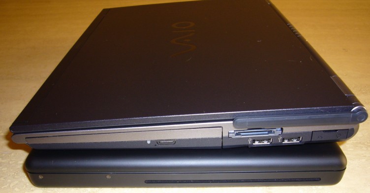 The optical drives are about the same on the two machines other than the SZ is a conventional tray loader and the MacBook is a slot loader. I think I prefer the tray because it’s easier on the media and you can use mini-media, but the slot loader sure helps the MacBook feel sturdier than the SZ.