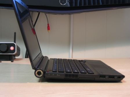 One really unique feature is the placement of the power button. It resides within the right side cylindrical hinge and glows green when the laptop is powered on and amber when in standby. The hinge reminds me of the Asus W3J, however this design was carried over from the VAIO X505 in which the TZ drew much inspirations from.