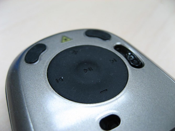 The media functions that I mentioned previously on the bottom of the mouse worked well. I have the Windows XP operating system with Microsoft PowerPoint, Windows Media player and iTunes. The mouse worked with all three of these programs seamlessly. To use the mouse with PowerPoint or similar programs you flip the small black switch on the bottom to presenter mode (It’s the projector screen icon). To switch to Media Player, iTunes or back to a regular mouse, just flip to the music/mouse mode (it’s the music note icon).
